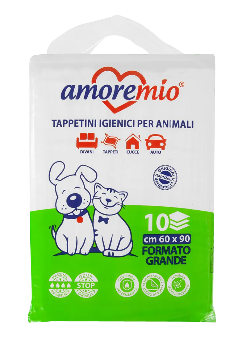 AMOREMIO Tapis Hygiénique 90*60 Pour Chat et Chien (90007) Le tapis hygiénique AMOREMIO de dimensions 90*60 est idéal pour les chats et les chiens. Il offre une surface confortable et absorbante, assurant une hygiène optimale pour votre animal de compagnie. Sa conception pratique permet de retenir efficacement les liquides et les débris, tout en étant facile à nettoyer. Parfait pour garder votre maison propre et fraîche, tout en offrant à votre animal un espace propre et confortable.